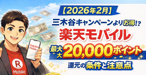 楽天モバイル 【2026年2月】三木谷キャンペーンよりお得!?楽天モバイル「最大20,000ポイント」還元の条件と注意点を徹底比較 2026年2月3日 【損してない?】楽天モバイル契約、三木谷キャンペーンが最強だと思っていませんか?実は「初めての方」なら、さらに6,000pt多い最大20,000pt還元が狙えます。3/2までの期間限定、確実にポイントをもらうための条件と手順をプロが解説。...