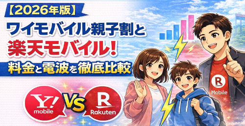 ワイモバイル 【2026年版】ワイモバイル親子割と楽天モバイル!料金と電波を徹底比較 2026年2月4日 子供のスマホ代、親がソフトバンク系なら「ワイモバイル」、それ以外なら「楽天モバイル」が正解!その理由は?3GB以下の最安プランから高校生の無制限利用まで、年齢別の損益分岐点を算出。電波やLINEのID検索など、親が気になる疑問も全解決!...