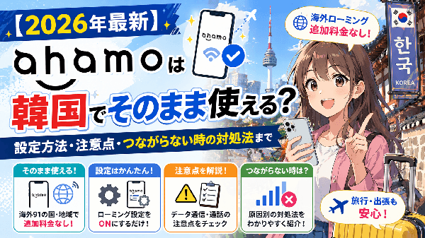 ahamo 韓国旅行はahamoが最強!ローミング設定と3つの罠(注意点) 2026年4月19日 「ahamoは韓国でも無料でそのまま使えるって聞くけど、後から高額な請求が来ない?」と疑っていませんか? 確かに基本料金内で月間30GBまで使える最強のプランですが、実は事前の確認不足で「旅行中に突然ネットが激遅になった…」「通話料で数千円も取られた!」と後悔する人も少なくありません。 特に『ahamo大盛り』に加入し...