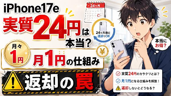 NEW! ワイモバイル 【2026年4月最新】iPhone 17eを最安で買うならワイモバイル|2年総額24円の条件と注意点 2026年4月28日 最新iPhone 17eを最安で買うならワイモバイル!楽天やahamoと徹底比較し、なぜ「2年総額24円(月1円)」が一番お得か解説します。隠れ手数料ゼロで家計に優しい理由から、契約前に知るべき罠まで、絶対に失敗したくない現実派向けの完全ガイドです。...