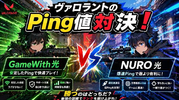 NEW! Gamewith光 【比較】ValorantでPing一桁を出せる最強回線はどっち? 2026年4月20日 夜のランクマ、大事な撃ち合いの瞬間に限って画面がカクつく。Ping値が安定せず、自分の実力を100%出し切れない。 そんなValorantプレイヤーの最大の悩みを解決するのが「回線選び」です。しかし、公式サイトを見てもどれが本当にFPS向きなのか分かりづらいですよね。 そこで本記事では、Valorantプレイヤーから絶...