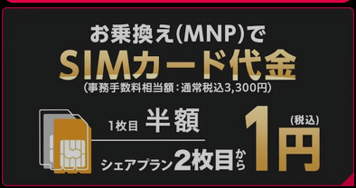 SIMカード代金1枚目「半額の1,650円」