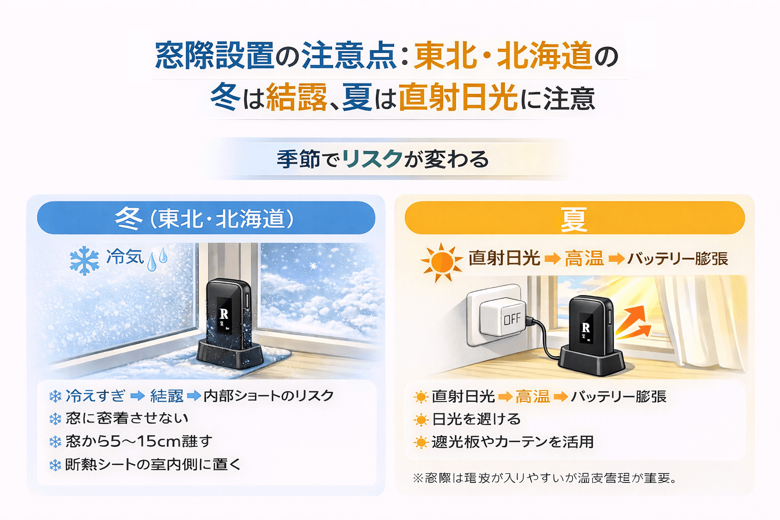 ④ 窓際に置くときの注意点(東北・北海道の冬は結露リスク)