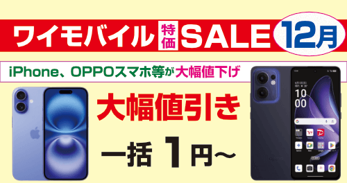 ワイモバイル公式、ワイモバイル・ヤフー店、どちらも1円で購入できます。